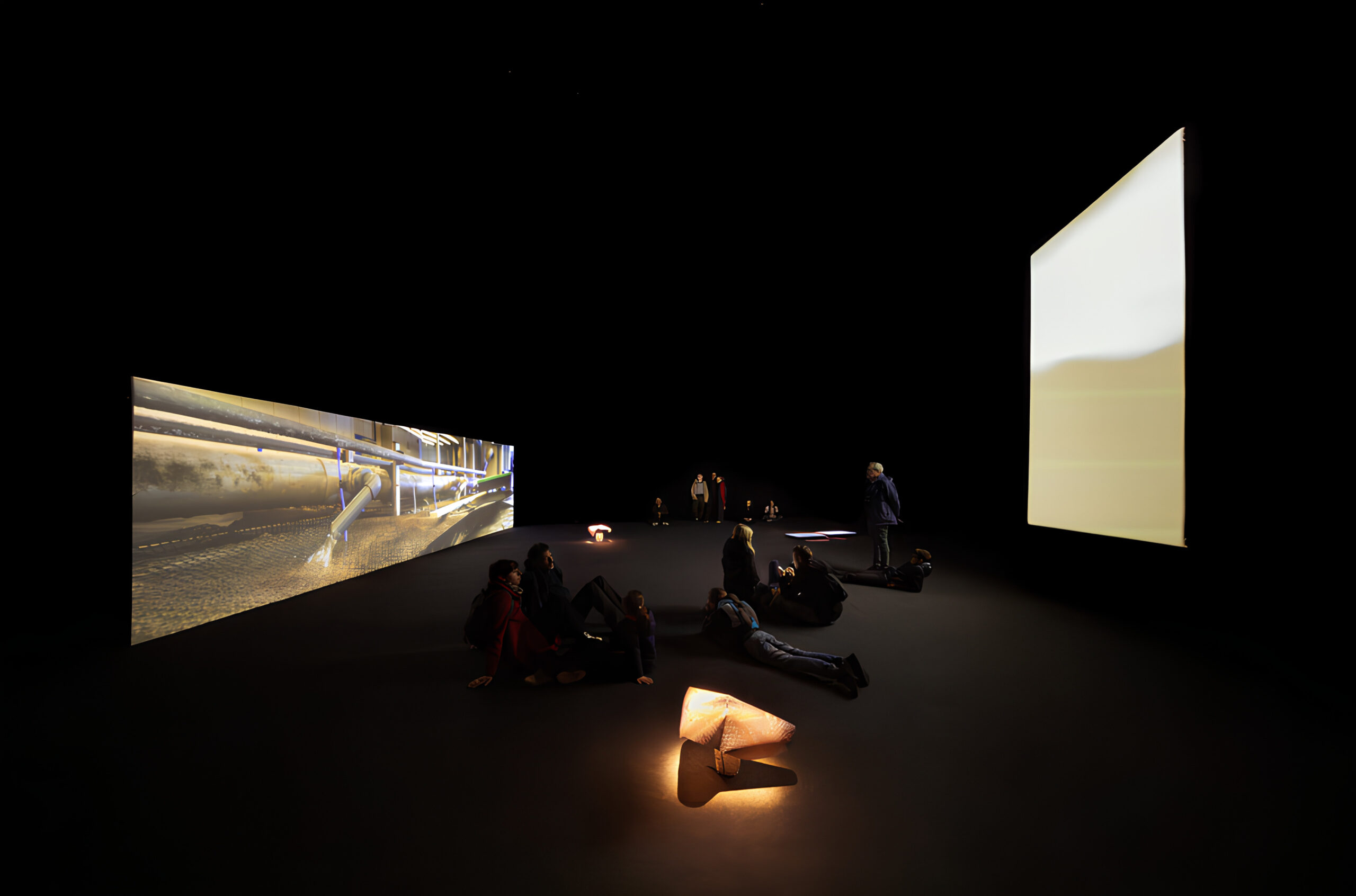 Fossilized Futures si muove all’interno della temporalità del fiume, un tempo che non procede in modo lineare ma si accumula, si deposita, costruendo una memoria stratificata fatta di sedimenti biologici, storie umane e processi geologici. È in questa dimensione che prende forma la partitura sonora multicanale, generata dalla sonificazione di dati fluviali, registrazioni ambientali e voci corali raccolte lungo i fiumi Mosa e Sambre, fino a comporre un paesaggio sonoro che sembra respirare insieme all’acqua.