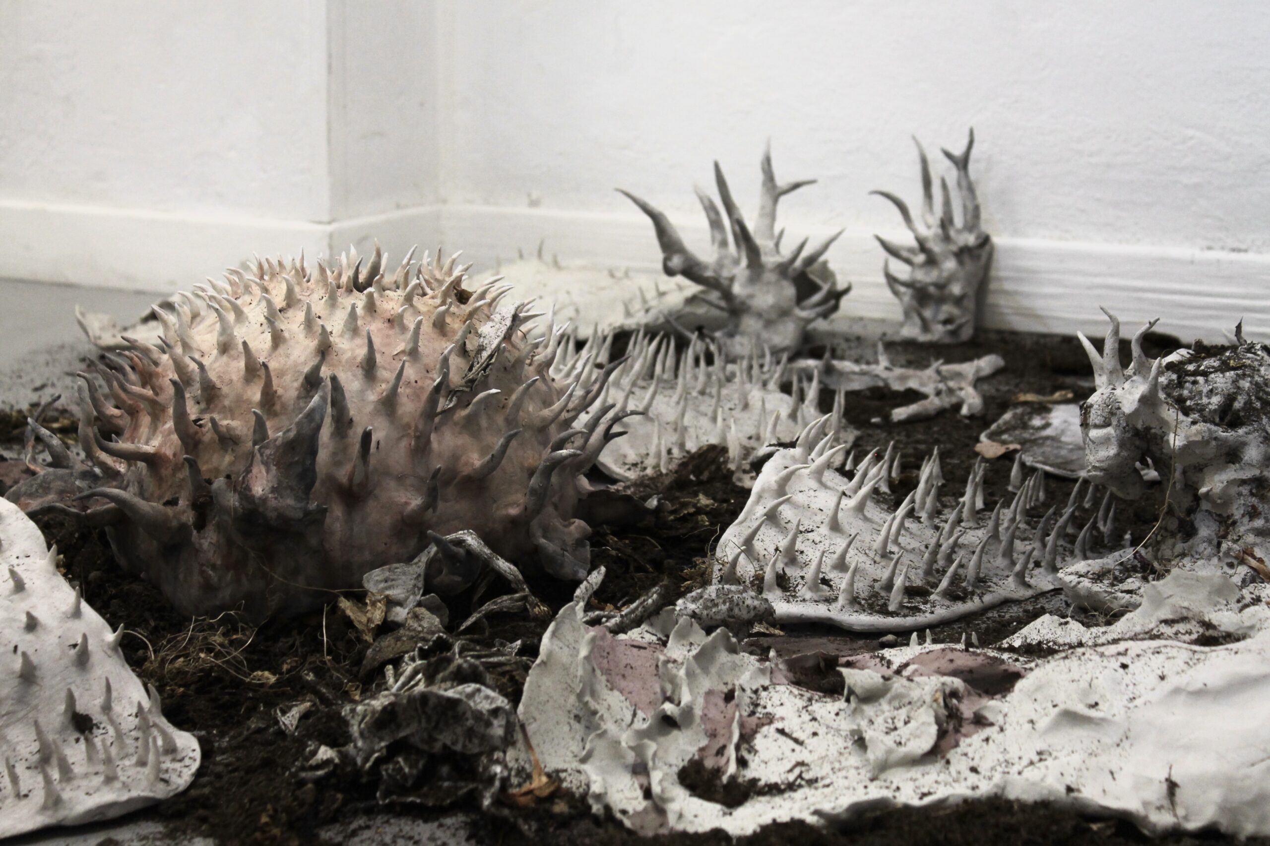 Concentrandosi sulle forme degli elementi, soprattutto i più piccoli, scopre nuovi mondi in cui meraviglia e mostruoso si fondono. La materia che utilizza, principalmente l’argilla, è per lei un organismo vivo: un corpo ribelle che supera la matrice di ciò che può o deve essere, rivoltandosi a un destino socialmente determinato. Questo corpo è costituito da materia vibrante, che rompe i limiti della forma data per cooperare con altra materia, generando sempre qualcosa di nuovo.
