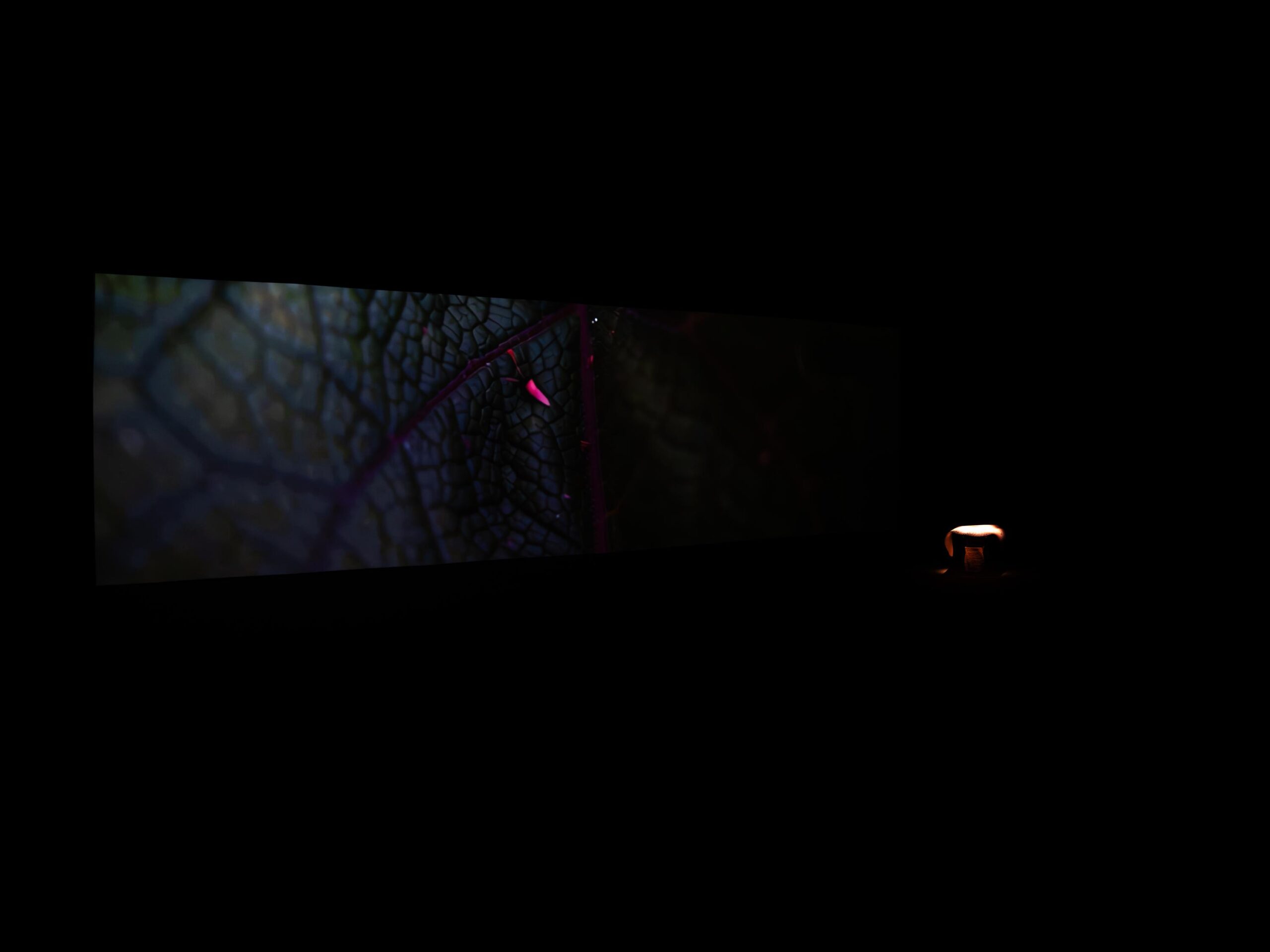 L’installazione è stata ripensata per gli spazi di serra madre e per il suo impianto audio immersivo multicanale, lavorando sulla spazializzazione del suono e sulla sua capacità di costruire un ambiente percettivo continuo.