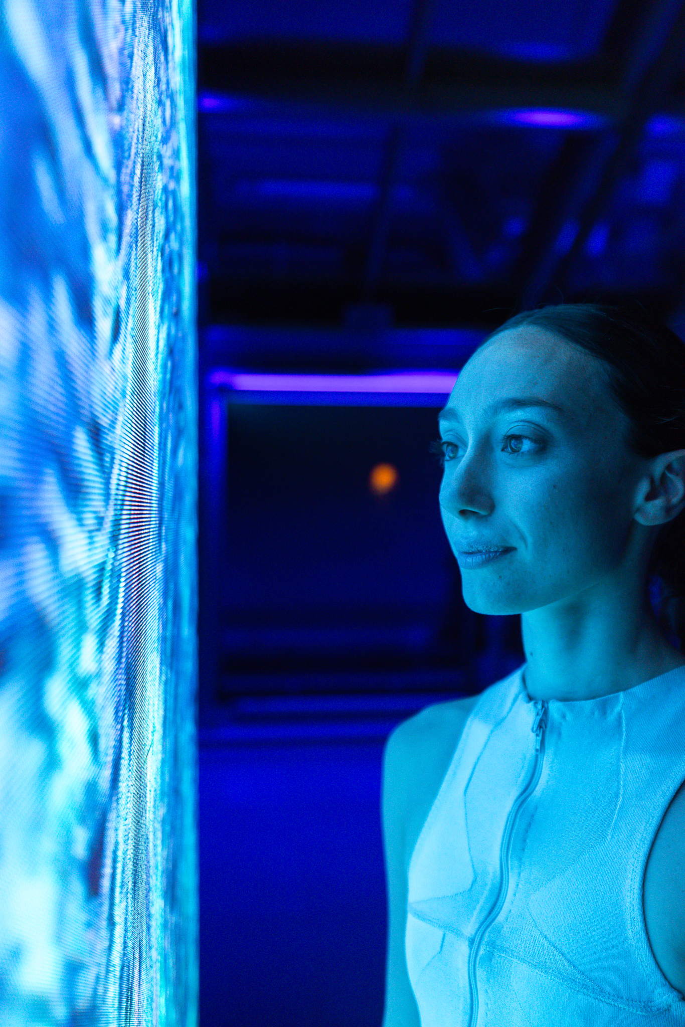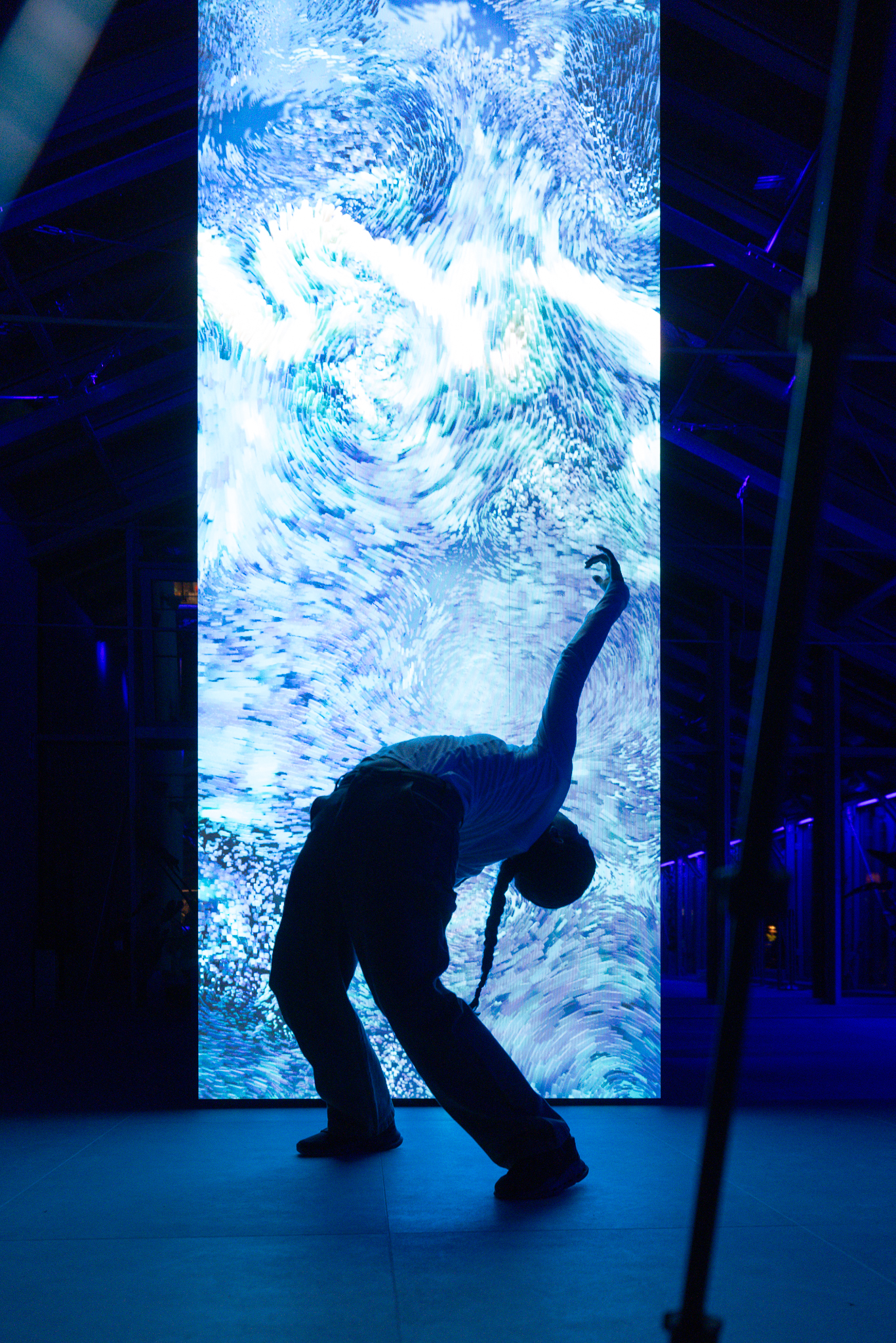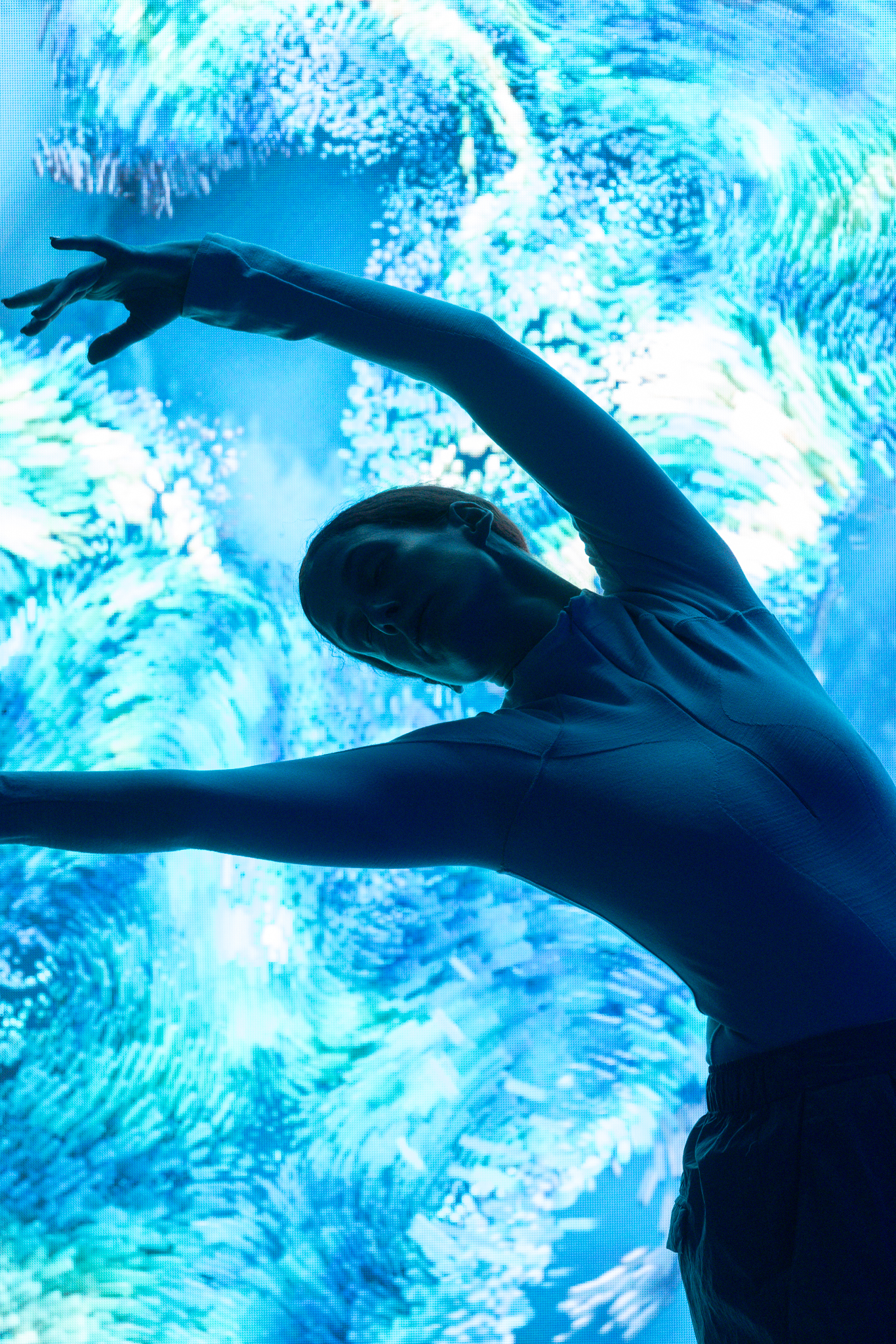 I ritmi e i flussi delle correnti oceaniche diventano un panorama visivo e sonoro immersivo: un’esperienza interattiva che permette allo spettatore di esplorare la delicata relazione simbiotica tra attività umana ed ecosistemi marini attraverso il proprio corpo.